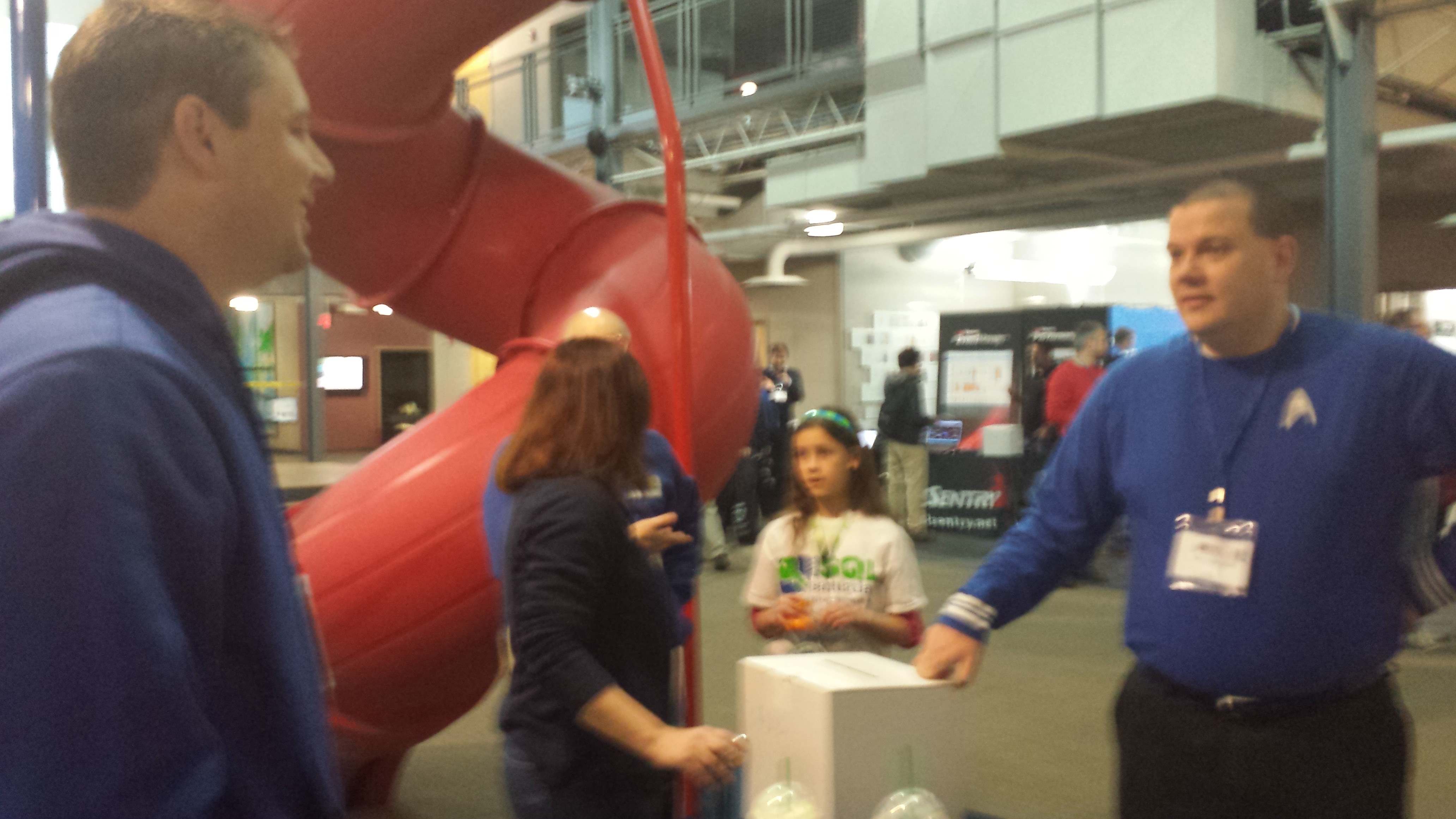 Saturday began again very early to setup the BlueGranite booth. Again very proud for being a sponsor for this event and for such a strong presence of speakers. Cory Stephenson (twitter|LinkedIn) also helped organize the event. I spent most of the day at the booth having great conversations. The booth had a nice spot right next to the curly slide. Yes I said slide, no typo there. Hyland Software’s building had a couple slides…how cool is that?!